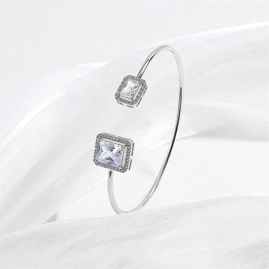 Adjustable Square Vertical Cubic Zirconia Opening Cuff Bangles